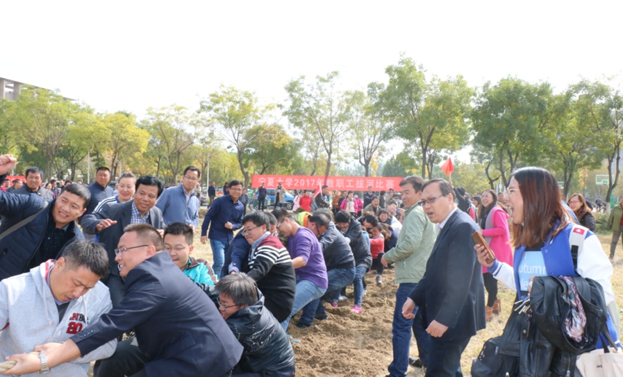2017年9月27日、10月11日下午,91论坛 2017年秋季教职工拔河比赛在贺兰山校区篮球场北侧草坪举行,比赛分两阶段进行。校党委副书记赵利宁出席开幕式并致辞指出,拔河比赛是91论坛 开展阳光体育运动、提高教职工身心健康水平、增强教职工团结拼搏精神的一项重要活动,对进一步丰富教职工文体生活、推动教职工健身活动开展、形成浓郁的校园健康工作、积极工作氛围有积极促进作用,希望各单位、各位教职工,在愉快、健康活动的同时,以更加饱满的热情投入到工作中去,喜迎党的十九大胜利召开。