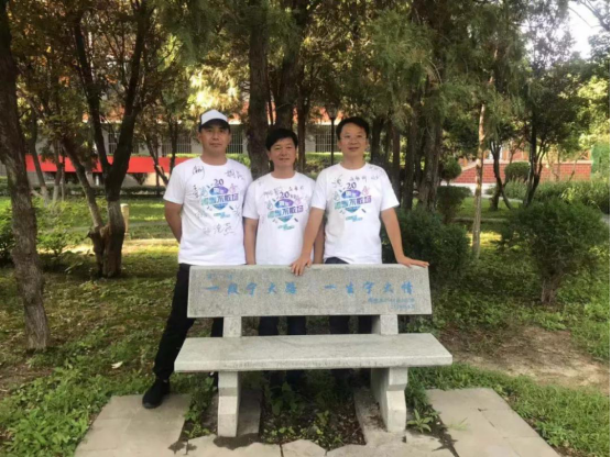 此次返校的30位校友在开完班会后,分别参观了校史馆、怀远校区登上主楼俯瞰校园,他们还特意找到班级名义捐赠的石椅并合影留念。
