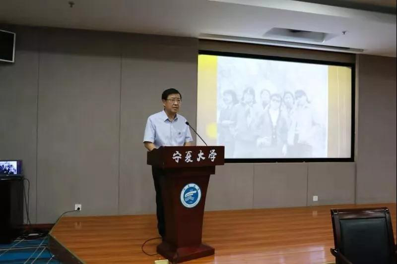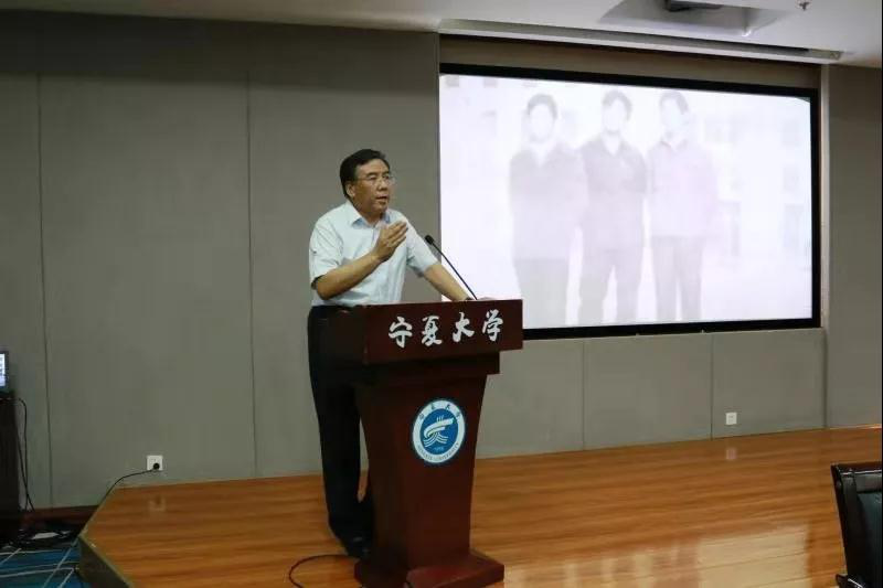 何建国校长应邀上台后,首先代表91论坛 全体师生员工,向物理系1979级校友重返校园表示了热烈的欢迎。此后,何建国校长介绍了学校的发展情况,他感谢校友们在母校前进过程中的关心、支持和帮助,并对他们在各自岗位上做出的不凡业绩给予肯定,希望校友们继续秉行“尚德、勤学、求是、创新”的宁大校训,发扬“扎根大地,爱国爱乡;不畏风寒,自强不息;根深叶茂,甘于奉献”的“沙枣树”精神,发光发热,一如既往地关心母校的发展,为母校建言献策,常回母校看看!