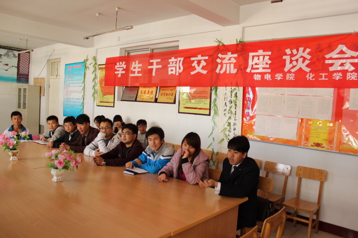 这次会议,将会促进我们学生干部在工作中的积极性,在吸取了交流经验后,我们将会做得更好!会议顺利进行完毕后,与会人员一起合影,作为宾上客,我们也不忘诚邀化工学院的学生干部下次到我们物电学院进行工作、学习上的交流。