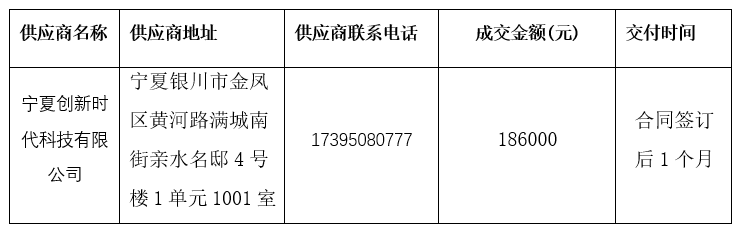 经过市场询价,宁夏创新时代科技有限公司所报的产品符合要求,且价格最低。