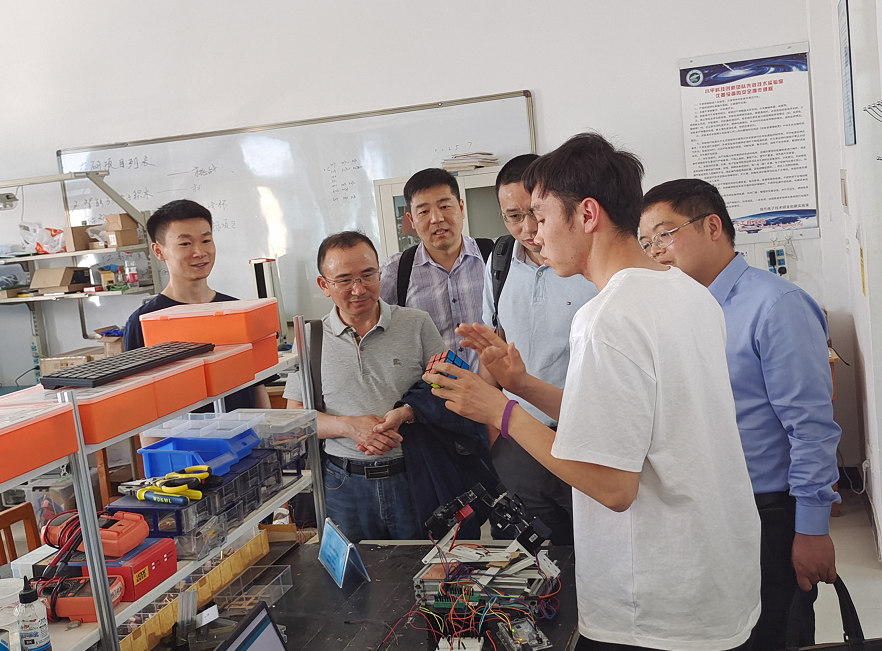 陈国初一行首先参观了91论坛 航空科技创新实践工作室和91论坛 学生创新训练基地,张虹波老师介绍了工作室的历史发展、运行管理及十年来取得的成绩,任剑杰同学介绍了基地运行情况的及实践项目,双方表达了在学生创新工作方面的合作愿景。