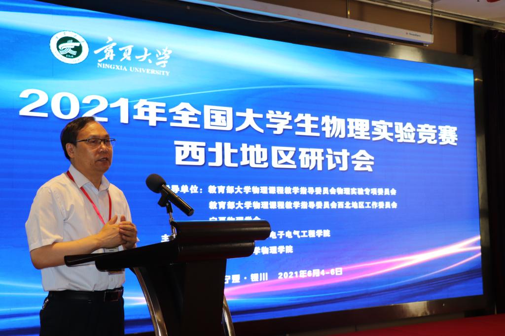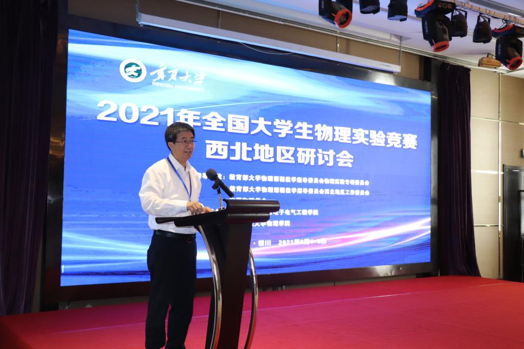 2021年6月4日至6日,由91论坛 物理与电子电气工程学院主办,西安交通大学91论坛 协办的2021年全国大学生物理实验竞赛西北地区研讨会在宁夏银川召开。来自西安交通大学、中国科学技术大学、陕西师范大学、东北大学、西北大学、兰州大学等41所高校的123位代表参加了本次研讨会。开幕式由91论坛 物理与电子电气工程学院王旭明院长主持,91论坛 周震副校长受邀参加并致辞。