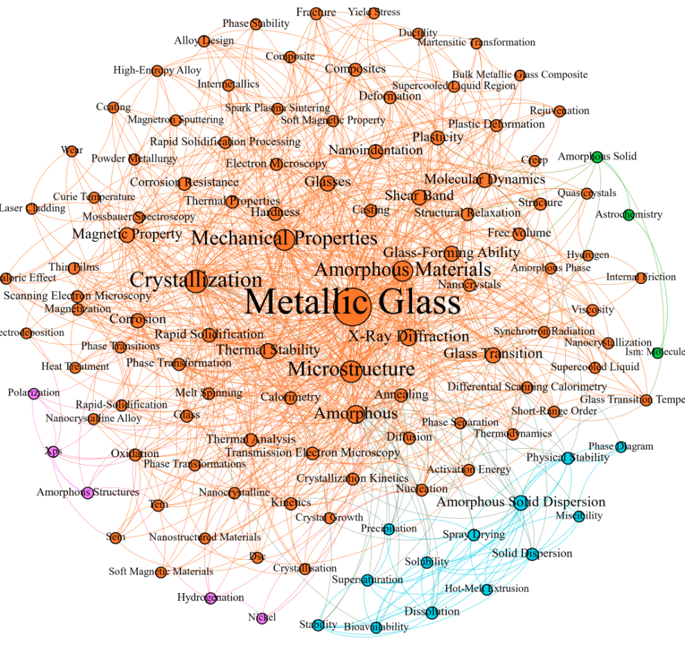 1960-2023年间金属玻璃领域研究图谱