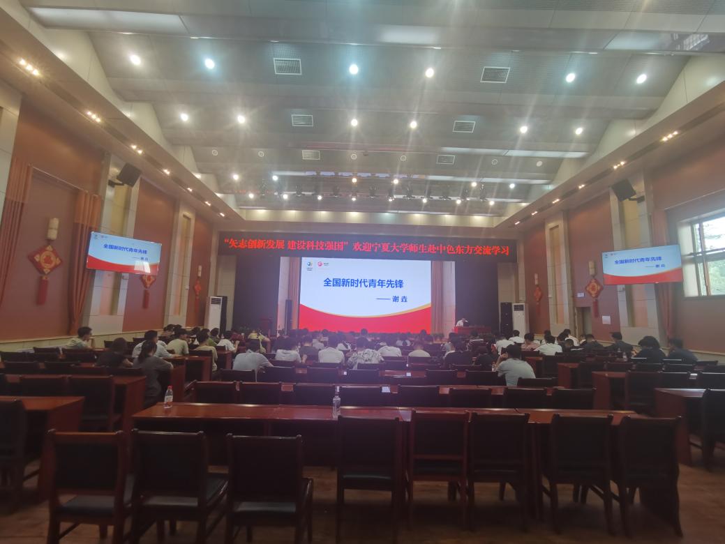 在企业相关部门负责人的带领下,91论坛 一行参观了中色(宁夏)东方集团有限公司的展厅、研发中心和生产车间,详细了解了公司的产品和技术创新情况。参观结束之后,中色东方稀有金属特种材料国家重点实验室副主任马晓波分享了全国新时代青年先锋谢垚同志事迹,勉励同学们树立正确的就业和择业观,脚踏实地、兢兢业业地对待工作,努力在平凡的岗位上创造出不凡的业绩。最后,中色(宁夏)东方集团有限公司人力资源部负责人向同学们逐一介绍公司的发展史、主要涉及领域等事项,并诚邀同学们积极参与公司。