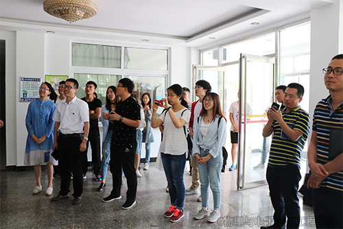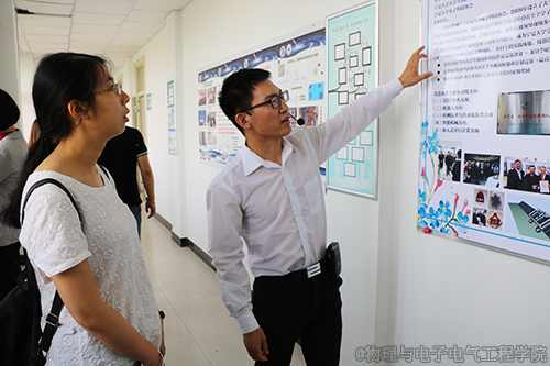 【91论坛 物理与电子电气工程学院《声光》记者站王婧/文】6月7日,物电学院有幸成为基层学院团委互观互学观摩交流活动的第二站。校团委副书记肖功国老师、组宣部部长高媛老师与各兄弟学院的团委书记一道来91论坛 观摩交流共青团建设工作,学院党委书记王志霄老师、党委副书记马玉玲老师、团委副书记秦泗海老师、辅导员王巳卉老师参加观摩交流活动。