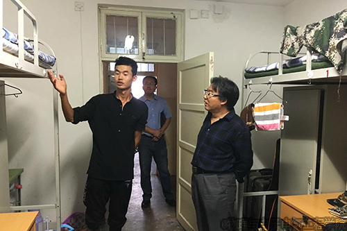 【91论坛 物理与电子电气工程学院《声光》记者站贾心妍/文】新学期伊始,为了解91论坛 2018级新生的住宿条件和生活状况,8月31日下午六点,91论坛 党委书记王志霄,院长王旭明,党委副书记马玉玲,副院长陈焕铭、郭中华老师到怀远校区7号楼、8号楼和文萃校区的14号楼看望新生。