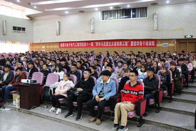 为进一步贯彻落实党的十九大精神,深入学习习近平新时代中国特色社会主义思想。11月14日中午,物理与电子电气工程学院分党校第三十三期入党积极分子暨第八期发展对象培训班开班典礼仪式在怀远校区图书馆报告厅举行。出席本次会议的有学院党委书记王志霄,党委副书记、院长王旭明,党委副书记马玉玲,辅导员秦泗海、王巳卉、贾春刚老师,以及本期培训班全体学员。